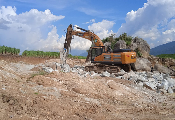 - Với thế mạnh dùng các loại máy xúc và búa cỡ lớn như máy xúc KOMATSU PC450, PC650, PC800, HITACHI EX450, KOBELCO450 và những loại búa lớn có đường kính đinh lên tới 195mm nên Công Ty Cổ Phần Đầu Tư Và Xây Dựng Tùng Linh có thể thực hiện công việc tại những nơi đá có độ cứng cao mà phương án thi công không được phép nổ mìn. Tính đến nay, chúng tôi đã và đang thực hiện đúng tiến độ và chất lượng theo yêu cầu của nhà thầu.